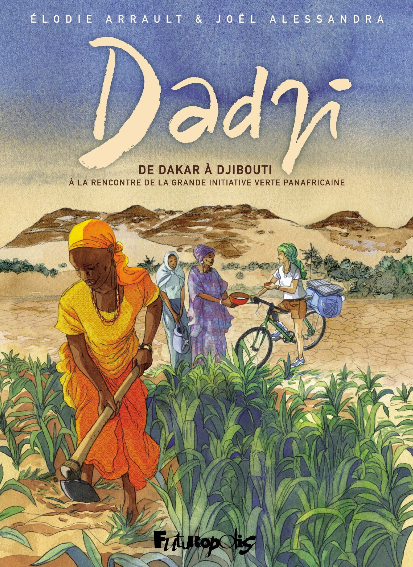L’histoire vraie d’un puissant appel de la Terre. En 2007, Élodie perd sa mère. Une de ses fillestombe gravement malade. La rupture avec le père de ses trois enfants a raison de sa vie d’avant. Elle s’inscrit au lycée agricole poursuivre une formation en oléiculture, fascinée par les oliviers. Une passion qui la conduit d’abord en Mauritanie au village écologique pilote de Maaden. Deux modèles de vie raisonnent alors pour elle : la sobriété heureuse de Pierre Rabhi et l’agroécologie. Théodore Monod a guidé ses pas. Après deux ans passés àse documenter, Élodie Arrault prend contact avec les différents acteurs locaux. Elle veut créer du lien pour coordonner les aides et imagine une grande caravane de graines. En septembre 2022, c’est son grand départ. Elle vend sa maison, passe son permis dromadaire, prend rendez-vous dans 10 pays pour une petite année itinérante. Son but ? Devenir l’une des ambassadrices de la muraille verte et faire le lien entre les ONG sur place. Dadji se veut le carnet d’un voyage pleinement fraternel qui nous invite à une réflexion sur nos modes de consommation et nos ressources tant naturelles que spirituelles.